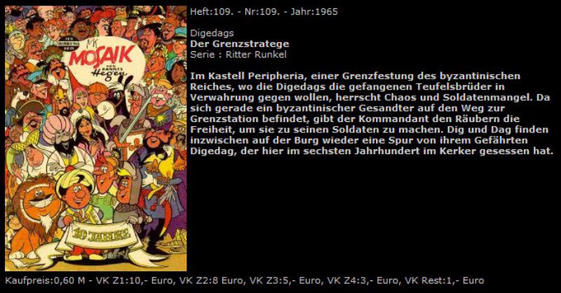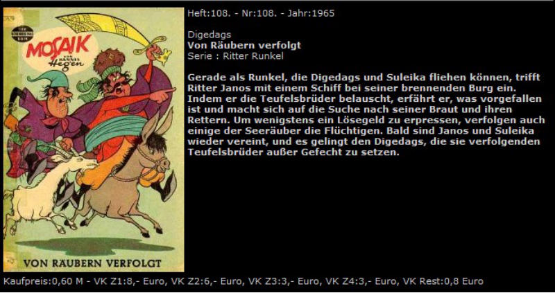 Die Comichelden Dig, Dag und Ritter Runkel geraten in die Hände der Teufelsbrüder, die auch Suleika gefangenhalten. Mit List gelingt es ihnen, sich und Suleika zu befreien. In den Bergen Dalmatiens treffen sie auf neue Spuren von Digedag.
