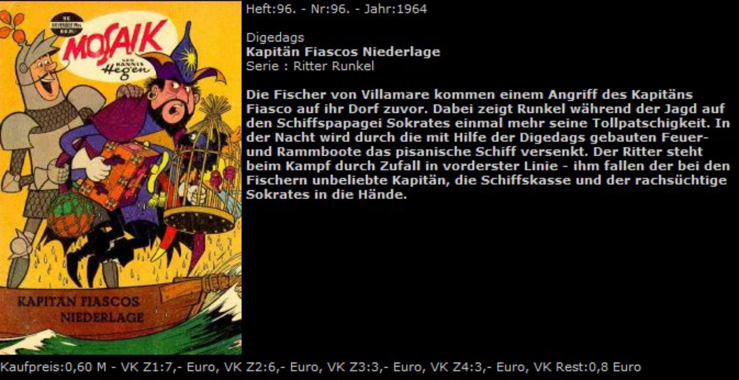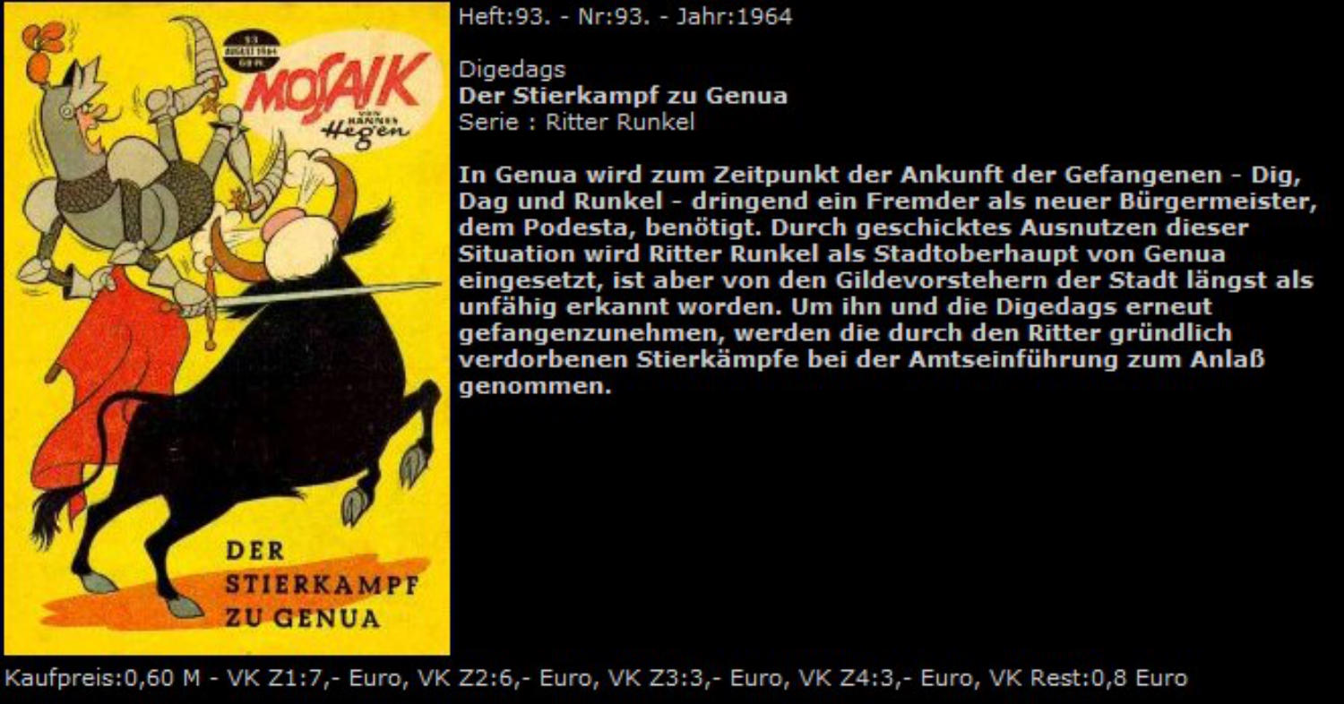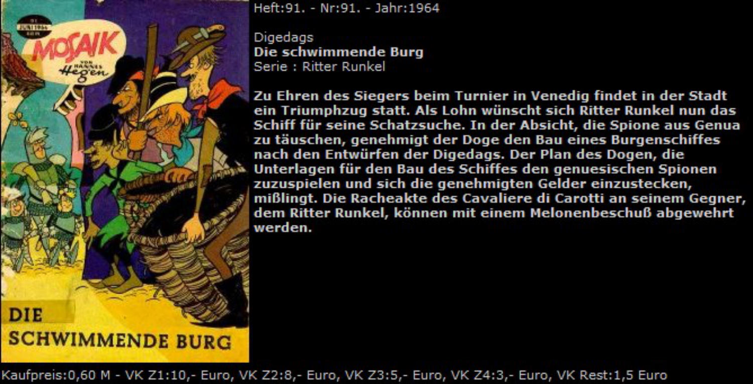 Im Jahre 1284 trifft Ritter Runkel von Rübenstein mit seinen Knappen Dig und Dag in Venedig ein. Er ist auf der Suche nach einem Schatz im Morgenland. Für seine Fahrt dorthin fordert er von dem neugewählten Dogen ein Schiff.