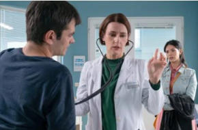 Roland Heilmann ihre unterschiedlichen Meinungen diskutieren, taucht eine Patientenangehörige in der