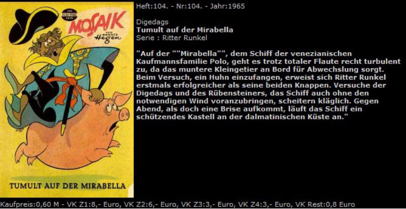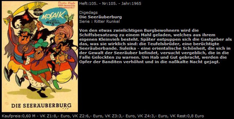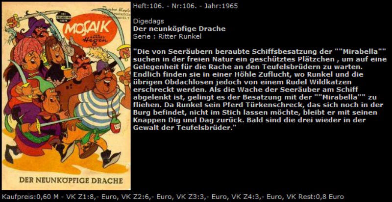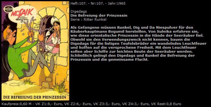 Die Comichelden Dig, Dag und Ritter Runkel geraten in die Hände der Teufelsbrüder, die auch Suleika gefangenhalten. Mit List gelingt es ihnen, sich und Suleika zu befreien. In den Bergen Dalmatiens treffen sie auf neue Spuren von Digedag.