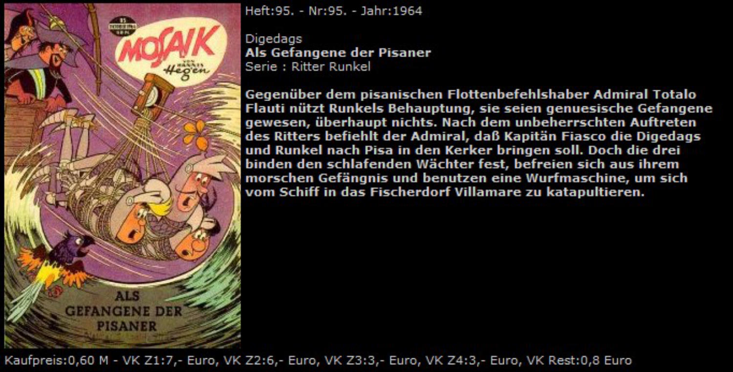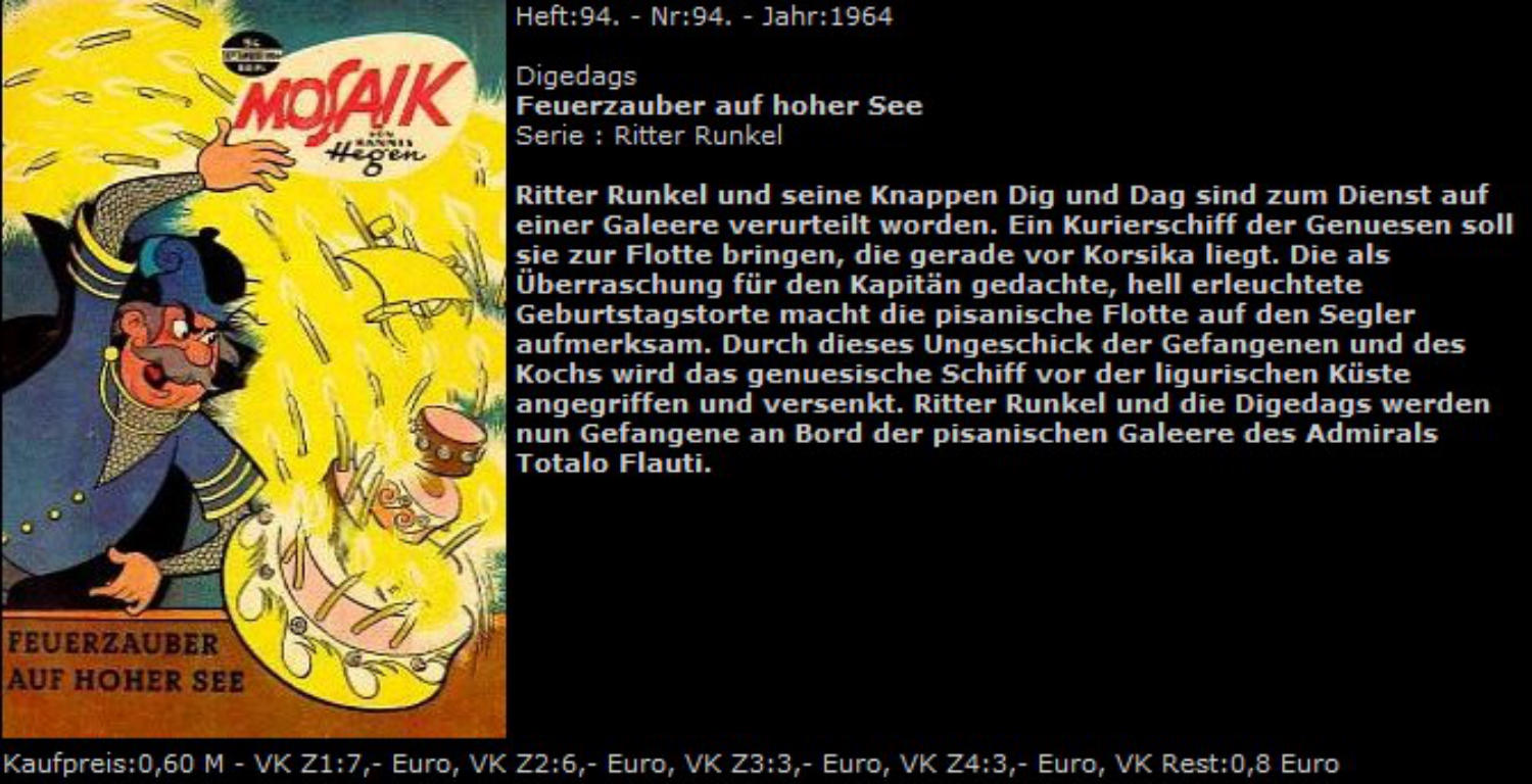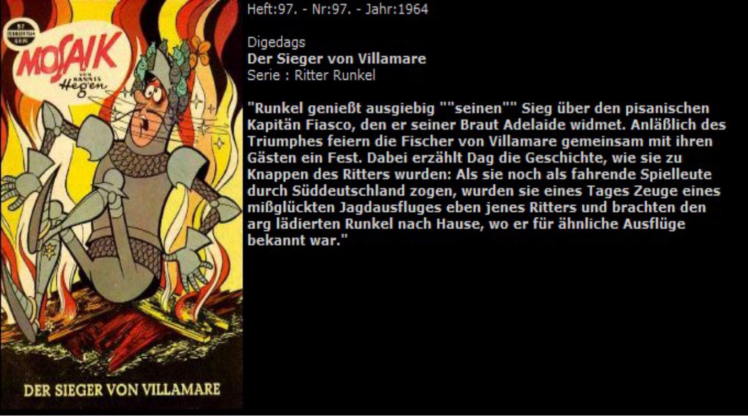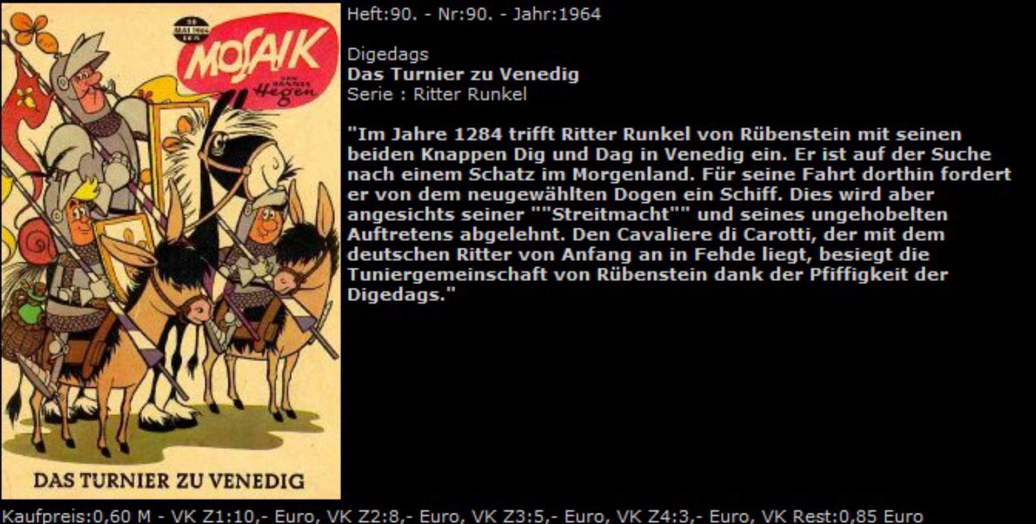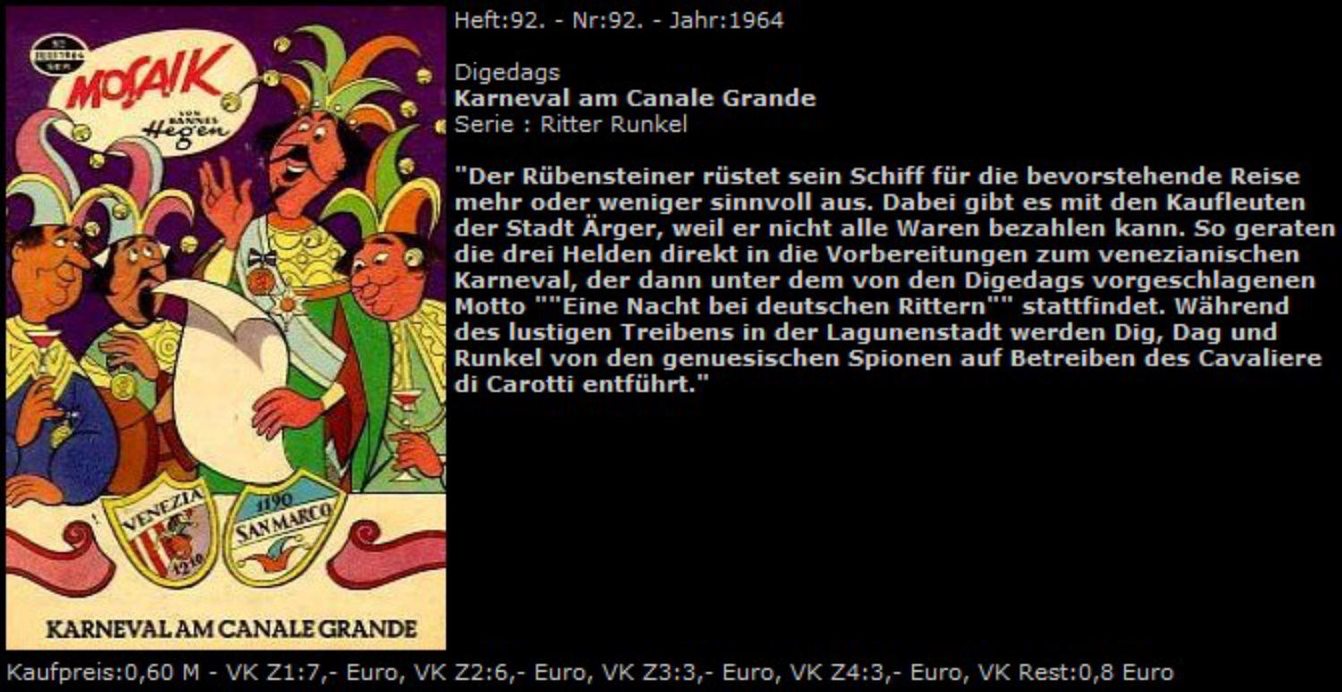 Im Jahre 1284 trifft Ritter Runkel von Rübenstein mit seinen Knappen Dig und Dag in Venedig ein. Er ist auf der Suche nach einem Schatz im Morgenland. Für seine Fahrt dorthin fordert er von dem neugewählten Dogen ein Schiff.